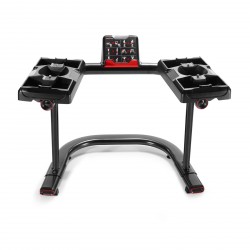 The Bowflex SelectTech weight stand is the nice and practical accessory for the new Bowflex weights 560. The stand is characterised by a precious design, a high-quality workmanship, and a high loadability. For the optimal training at home, the weight stand 560 is equipped with a very useful tablet or smartphone holder. The mobile device is placed right in the middle, os that you can always look at your important training data. Putting down and lifting the weights works excellently and is low-noise. The SelectTech weight stand is practical and a nice add-on for your training room at home.